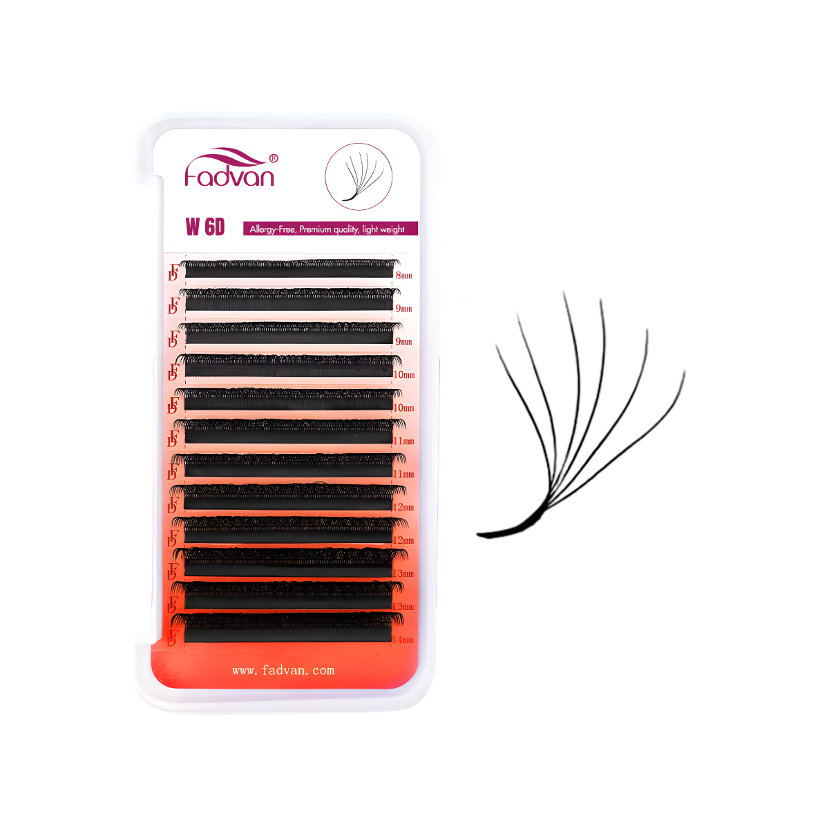 Os Cílios Fadvan W 6D concentram inovação e praticidade, ideais para lash artists que desejam aliar densidade intensa à leveza e velocidade na aplicação. Com formato “W” contendo 6 fios unidos — os chamados fans prontos — esses cílios oferecem um volume expressivo e elegante, dispensando a montagem manual.